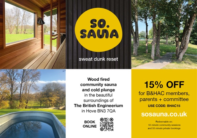 We’re pleased to share a special offer for BHAC members, families and committee, from the team behind the new community sauna at The British Engineerium in Hove.